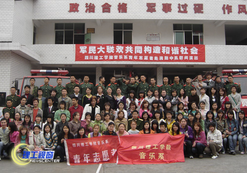 3月19日上午,音乐系共80多名青年志愿者赴自贡消防中队,与消防队员们共同开展了一场别开生面的警民联谊会。音乐系唐莉老师及消防中队伍指导员与大家共同观看了演出。
