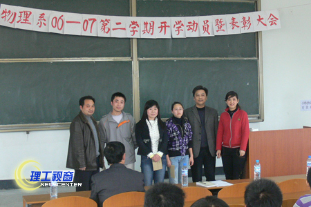 为表彰先进,推动争先创优的良好风气,物理系于3月14日举行“物理系06-07学年度第二学期开学动员暨表彰大会”,大会表彰了物理系一批06-07学年度第二学期在评估、学习、工作、校园文化活动中取得长足进步并获得优异成绩的先进集体和个人。