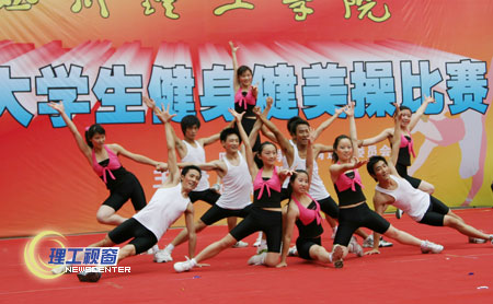 本次比赛共有包括研究生、基础教学部在内的19支代表队参加。中文系的蓝色花团亮相,为比赛拉开了序幕。其中计科系代表队将古典风格融入到健美操中,令人耳目一新;而音乐系代表队也结合自身特点,以优美的具有舞蹈性的动作抓住了观众的眼球;基础教学部代表队则将拉丁、瑜珈等元素穿插在健美操中,动作显得十分流畅。赛场上各代表队的表现不时赢得观众的热烈掌声与热情的欢呼。而体育系则是凭借着一系列高难度的动作获得了全场最高分。
