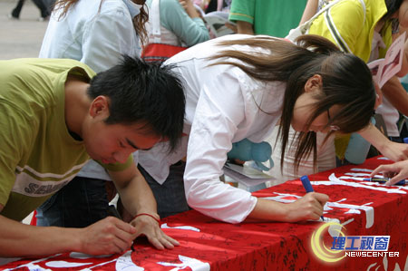 签名活动中,市水务局工作人员给同学们介绍了目前自贡缺水情况和节水知识,吸引不少过往师生。同学们踊跃参与签名活动,并表示大学生更应增强对水资源的忧患意识和节水理念,以后会更加珍惜水资源,并带动身边的人节约用水。