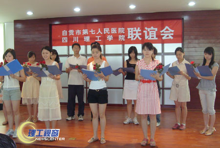 以“奉献青春,增长才干,服务社会”为宗旨,我院音乐系2005级1、2班和2006级1班的青年志愿者们与自贡市第七人民医院于2007年6月22日举行了一次联谊会,表达同学们对医护工作者的理解和尊敬,让同学们学习他们敬业奉献的精神。音乐系老师和第七人民医院的领导及东方锅炉厂的领导一同参加了本次联谊。同学们的小合唱《感恩的心》、二胡合奏《赛马》,独唱《我说我爱你》、诗歌朗诵《向护士敬礼》,男女对唱《你最珍贵》,萨克斯独奏《奉献》等节目表达了对医护工作人员的敬意和喜爱;护士们的礼仪表演,心肺复苏表演和独唱《青藏高原》更是锦上添花,把联谊活动推向了高潮,让我们看到了白衣天使们过硬的专业技能,也展现了医护工作人员的多才多艺。活动在大家共同演唱的《让世界充满爱》中愉快结束。