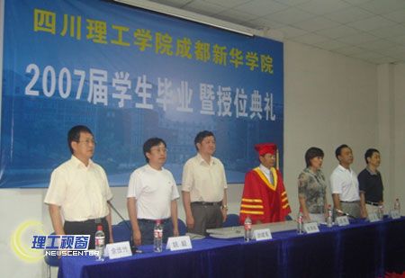 7月4日上午,四川理工学院成都新华学院首届本科毕业生毕业典礼暨学士学位授位仪式在该院多媒体一教室隆重举行。