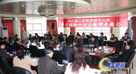 会议由党委副书记唐健禾主持。他首先学习传达了《中共四川省委关于认真学习宣传贯彻党的十七大精神的通知》。党委宣传部部长吴斌就党的十七大精神进行了专题发言。大家一致认为,党的十七大是在我国改革开放关键时期召开的一次十分重要的会议,对于党和国家事业的发展具有重大而深远的意义。胡锦涛同志在会上所作的报告,高瞻远瞩,立意深远,内容丰富,求真务实,提出坚定不移地走中国特色社会主义道路,夺取全面建设小康社会新胜利的奋斗目标,对我国社会主义经济建设、政治建设、文化建设、社会建设和党的建设作了全面部署,为我们继续推动党和国家事业发展指明了方向,是顺应时代潮流、符合党心民心、推进事业发展的纲领性文件。大家表示:要把学习宣传贯彻落实党的十七大精神作为当前和今后一个时期的首要任务,结合学校工作实际,切实抓紧抓好,抓出成效。