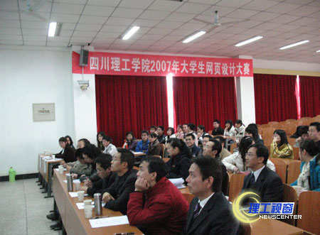 12月5日下午3点,四川理工学院2007年大学生网页设计大赛现场答辩会在厚德楼304教室举行。院团委书记王建琼、学生工作处副处长侯懿莅临答辩会现场,以及计科系党总支副书记陈年、肖强,计科系团总支书记张潇文以及由计科系和美术系老师组成的八人评委小组。