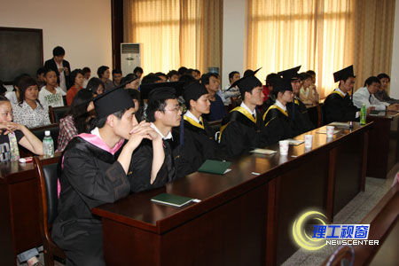 刘康在会上讲话。他说,蒋达全等9位毕业生在学习生活中付出了艰辛的劳动,圆满结束学业拿到学士学位证书,他们骄人的成绩令人感动,希望毕业生在未来的工作中,取得丰硕的成果,用真才实干建功立业。
