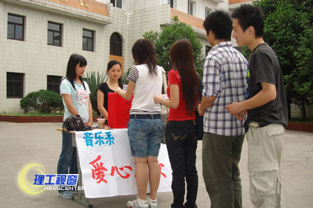 同时,为响应学院“爱心基金”募捐倡议,音乐系在演播厅门前开展了“爱心基金” 捐款活动,系党政领导带头捐款,同学们也积极踊跃为帮助困难同学尽一份力,献一片心。此外,音乐系还在博雅楼316教室为同学们放映了音乐剧《红楼梦》。