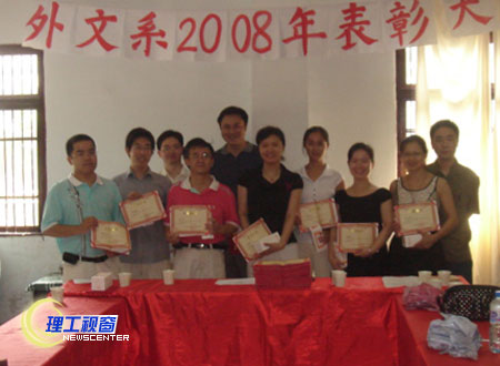 扫墓后,全体人员在金鸣山庄举行了外语学院“2007-2008年度优秀党员暨本科教学水平评估系先进个人表彰大会”。会上表彰了2007-2008年度外语学院朱文军、梁勇等12名优秀党员同志以及2007-2008年度本学院在教学、科研、学科建设等各方面工作中取得优秀成绩的刘川、廖琴芳等25位先进个人。