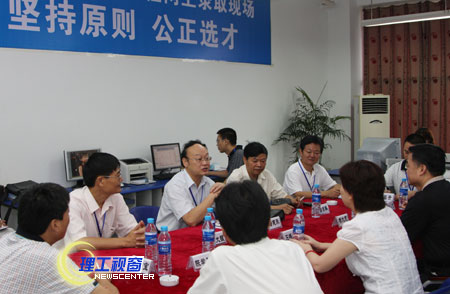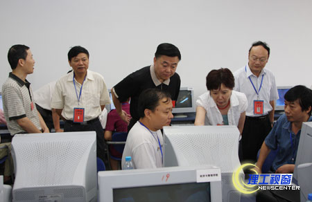 杨大忠、石岷嘉一行来到网管中心远程网上录取现场同工作人员进行了交流,并仔细查看了工作人员录取操作情况。