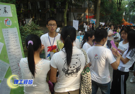 各家社团将自己最独特的一面突出展现,重点展示各自专业性。英语协会的现场英语SHOW,熟练正的发音吸引了不少新生的眼球;艺术协会的设计图片展以及服装成品也给人以强烈的视觉冲击;生物技术与工程协会实验室培养的平菇精致的树叶书签,无土栽培的植物,晶莹剔透的琥珀展现着科学的神奇与奥妙。