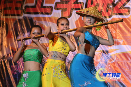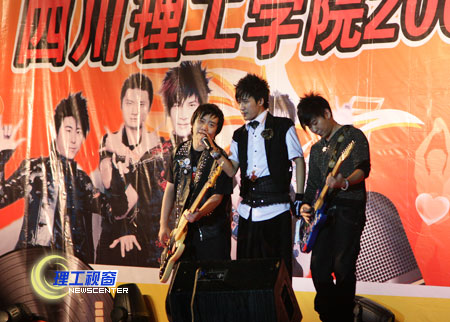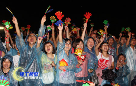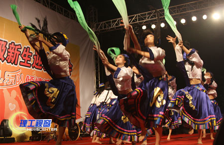 晚上7点整,夜空礼花四溅,整个舞台顿时欢悦起来,主持人随焰火喷薄而出,我国知名乐队“花儿”活力四射的表演,充分调动起了全场的激情,舞动的荧光棒、铿锵的拍拍手、雷鸣般的掌声、喝彩声和应唱声,此起彼伏,掀起了雨中一片片星光、一波波音乐的海浪,整个晚会高潮迭起。我校艺术学院学生还表演了歌舞、健美操和情景剧,体现了丰富多彩的大学生活,展现了大学生的青春与活力。很多新生激动地说,能在理工亲临“花儿”、能看到这样的演出,真棒!