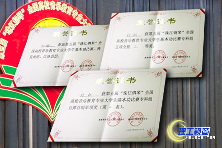 我校艺术学院音乐教育专业学生邱枫、孙璇于9月17日至23日在东北师大参加的第五届“珠江钢琴”全国高校音乐教育专业大学生基本功比赛中,凭着自己扎实的基本功和不懈的努力获奖,其中,邱枫同学一举获得专科组自弹自唱第二名,并在孙璇同学的配合下,获得全能三等奖的较好成绩,为我院争得了荣誉。