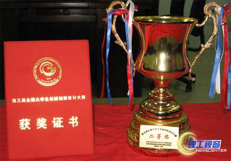 第三届全国大学生机械创新设计大赛决赛于10月18~19日在武汉海军工程大学举行,全国有68所高校131项作品参赛。由我校机械工程学院教师何庆中、李良、赵虎指导,2005级学生卢静、王柳、刘元忠同学设计制作的参赛作品——《废旧干电池自动脱壳机械》,在四川赛区比赛中获得参赛作品一等奖后,再次在全国总决赛中荣获二等奖。