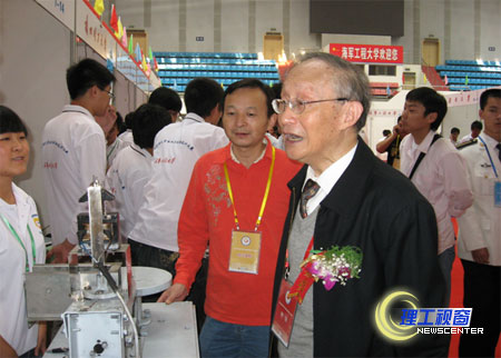 此次比赛中,中国工程院院士杨淑子教授特地来到我校展台,指导和询问作品设计、研制等情况,他对我校作品作出了结构简单紧凑、可靠实用的好评。