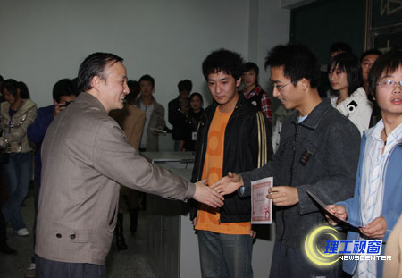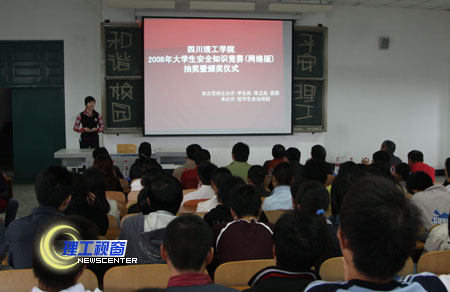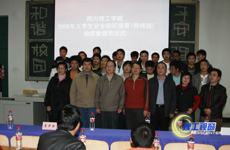 11月12日下午5点,2008年大学生安全知识竞赛(网络版)抽奖暨颁奖仪式在汇东校区厚德楼308阶梯教室隆重举行。学校领导及有关部门负责人通过网上随机抽取的方式分别抽取了一等奖2名、二等奖5名、三等奖10名以及优秀奖20名,并为获奖同学颁发了荣誉证书。