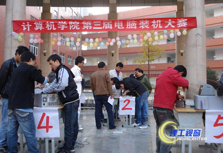 11月26日下午,计算机学院第三届电脑装机大赛决赛在汇东校区喷泉广场圆满落幕,从初赛报名的62支队伍中选拔出19支队伍参加决赛,决赛分为硬件拆卸、硬件组装、网线制作3个环节。比赛共决出一等奖1个队,二等奖3个队,三等奖6个队。一等奖由计算机科学与技术05级5班付强、陶小琴同学组成的团队获得。校团委书记王建琼、副书记张潇文,计算机学院党总支书记李作安、副书记肖强以及学工办老师到场观看了比赛,并为获奖同学颁发了荣誉证书。