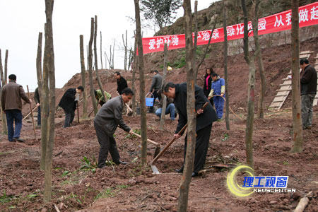 据后勤总公司负责人介绍:近来,九三学社、生工学院、校团委、计科学院的志愿者们相继在这里开展了植树活动,共植树千余株,一个“爱我理工、绿化校园”的理念在三月的校园蔚然成风。