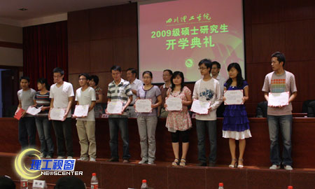 党委副书记李开世、副院长刘康分别宣读了对2007级、2008级研究生优秀奖学金、英语单项奖、研究生优秀干部奖以及2009级优秀入学研究生奖励获得者的表彰决定。学校领导为他们颁发了证书。
