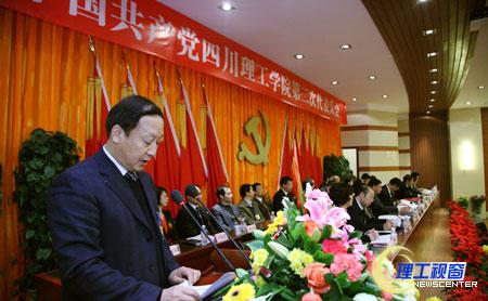 省委教育工委委员、教育厅党组成员、副厅长姜树林在会上发表重要讲话。他代表中共四川省委教育工委、省教育厅对我校第二次党代会的成功召开表示热烈祝贺,并对我校2005年第一次党代会以来,党委团结带领全体党员和广大师生员工,在各个方面取得的成绩给予充分肯定。他希望通过此次党代会进一步深入学习贯彻党的十七届四中、五中全会精神,进一步加强党的建设,科学分析高等教育形势,认真总结学校发展经验,努力把学校建设成为以工为主,多学科协调发展的特色鲜明、优势突出的高水平教学研究型大学。