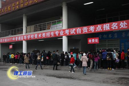 我校承办的四川省高校2011年美术专业招生考试(自贡考点)于12月24日——26日在我校汇东校区举办。来自泸州、内江、宜宾、自贡四地市的5061名考生参加了美术专业招生考试,在两天的时间内完成了《色彩》、《素描》、《速写》三门专业考试。我校近千名教职工投入本次考务工作。