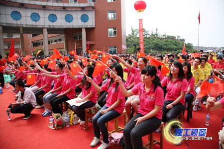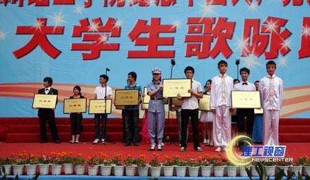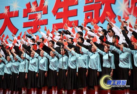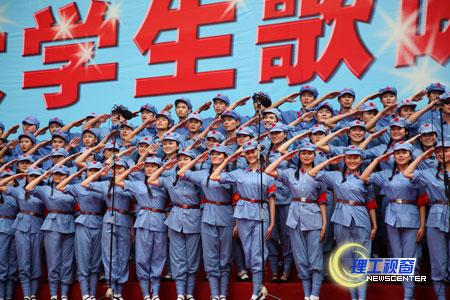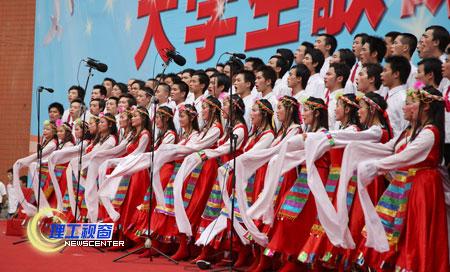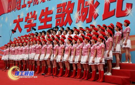 高亢雄浑或温情激越的歌声响彻校园,使人振奋、让人沉醉;各学院的彩色方阵以创意口号或标语渲染气氛、加油助威;台上花团锦簇,台下掌声雷动,全场激情澎湃、气势磅礴,比赛高潮迭起;校内外观众骤增,他们踏歌而来,陶醉在激昂的歌声中。