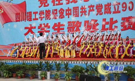 全校15个二级学院(部)及研究生代表队参加比赛,共同唱响红歌,颂扬中国共产党的丰功伟绩。以《国家》、《红旗颂》、《山丹丹花开红艳艳》、《四渡赤水出奇兵》、《祖国不会忘记》等为代表的红歌带领着现场观众重温党的奋斗历程与辉煌岁月。他们用嘹亮的歌声,和谐的声部组合和满腔的热情表达了对党的热爱和祝福。
