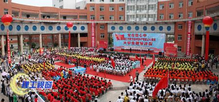 6月1日下午两点半,我校在汇东喷泉广场隆重举行“党在我心中”大学生歌咏比赛,学校党政领导李开世、龚敏、王成端及各学院各部门负责人观看了演出。