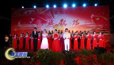 6月24日晚7:30,黄岭校区管委会、基础教学部主办的“党旗飘扬”——庆祝中国共产党成立九十周年暨“难忘黄岭”文艺晚会在黄岭校区足球场隆重举行。学校党委书记游建军、副院长龚敏、副院长刘康、副院长王成瑞以及各二级学院、各职能部门的领导莅临黄岭校区观看演出。晚会开始前,现场的气氛就已经被各学工组热情的拉歌比赛点燃,在一声声“团结就是力量”的歌声中,晚会正式开始。