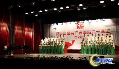 文艺演出在领唱合唱《南湖的船,党的摇篮》中拉开帷幕。整台节目由《开天辟地》、《浴血奋斗》、《建国创业》、《复兴之路》四个部分组成,精选了建党90年来具有代表性的歌曲、音乐作品,结合舞台表现加以重新诠释和演绎,具有强烈的时代精神与鲜明的艺术特色。混声小合唱《游击队歌》、舞蹈《忠诚》、男声独唱《浪淘沙.北戴河》、合唱《歌唱祖国》《社会主义好》、舞蹈《春天的故事》等节目以饱含深情的旋律讴歌党的丰功伟绩,用欢快的歌舞抒发对伟大祖国的无比热爱,用豪迈的誓言表达了理工人奋发向前的激荡胸怀。
