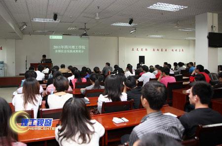 为了给各暑期社会实践团队提供一个良好的展示平台,进一步推进我校暑期社会实践工作,10月9日下午3:30,由学生工作部(处)、校团委组织开展的2011年暑期社会实践报告大会在就业指导中心隆重拉开帷幕。党委宣传部部长支果、党委学学工部部长钱晓和党委武装部部长钟世荣等职能部门负责人、各二级学院团总支书记、社会实践指导老师及全体社会实践成员到会。大会由校团委副书记王建琼主持。