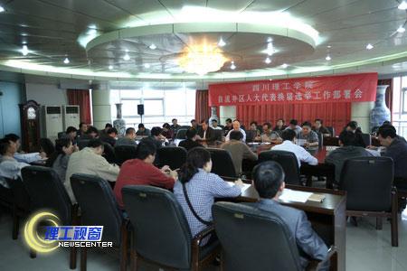为贯彻《中华人民共和国全国人民代表大会和地方各级人民代表大会选举法》和自贡市自流井区选举委员会《关于做好区、乡两级人民代表大会换届选举工作的意见》要求,我校于10月11日下午,在汇东校区四楼会议室召了自流井区人大代表换届选举工作部署会。党委书记游建军、副书记唐健禾,学校区人大代表选举工作领导小组全体成员、各分选区正副组长、工作人员共计44人参加了会议。