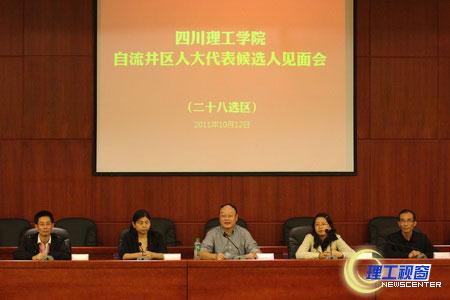 组织人大代表候选人与选民见面会,是保障选民民主权利的重要形式,是保证选举工作圆满成功的有效措施。10月12日、13日,按照自贡市自流井区人大代表选举委员会的统一部署和要求,我校选区在黄岭、汇东、营盘校区举行了区人大代表候选人与选民见面会。我校拟作为出席自贡市自流井区第十七届人民代表大会代表候选人、第28选区候选人丁杰、贾金玲、曾涛在汇东校区与选民代表举行了见面会(28选区候选人李可彬因公出差未到场)。第29选区候选人李坚、吴斌、彭礼坤在黄岭校区和营盘校区分别与选民代表举行了见面会。