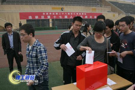 根据自流井区人大代表换届选举工作的有关规定,10月18日上午,我校分别在汇东校区汇南分选区、汇北分选区和营盘校区分选区、黄岭校区分选区召开了选举大会,顺利完成了自流井区第17届人民代表大会28、29选区人大代表换届选举工作。