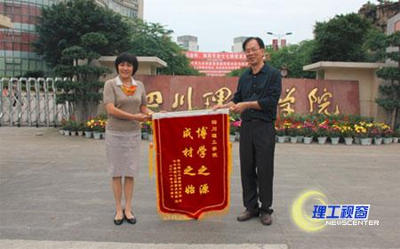 参观完后,江南平代表校友为学校送上了“博学之源,成材之始”的锦旗,感谢学校培养了他们,并祝愿学校更美好。