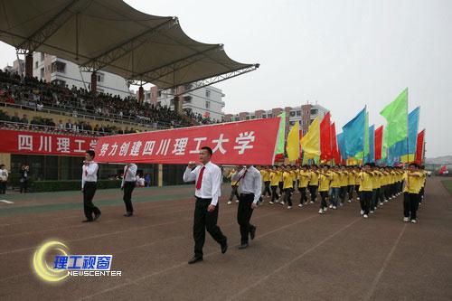 全场举行了庄严的升国旗仪式,学校体育运动委员会主任、副院长龚敏主持本次盛会,院长曾黄麟在开幕辞中说:“一年一度的田径运动会,是对我校体育教学水平、师生身体和心理素质的大检阅,是培育大学精神,弘扬大学文化,促进师生交流,展示师生风貌、全面推进素质教育、丰富校园文化生活的重要平台。去年我校夺得全国高校啦啦操和健身气功竞赛金银奖、获得全国化工群众体育先进单位称号,在数模、电子、机械等各类竞赛中取得了优秀的成绩。”他希望全校师生员工发扬黄岭精神,进一步促进我校群众体育运动的蓬勃发展和继续推进四川理工大学的建设。