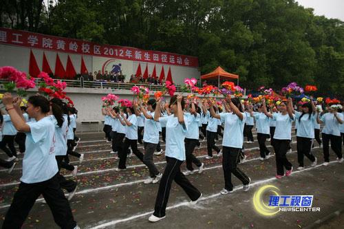 4月11日下午,我校2012年田径运动会在黄岭校区和汇东校区隆重举行。学校党政领导游建军、曾黄麟、唐健禾、李开世、龚 敏、刘 康、蔡乐才、王成端及校体育运动委员会全体成员出席了开幕式。伴随着雄壮激越的运动员进行曲,仪仗队,各二级学院、各党总支运动员代表方队,身着整齐服装,迈着铿锵有力的步伐从主席台走过,展示了我校师生英姿飒爽、精神抖擞、勇于开拓的精神风貌。
