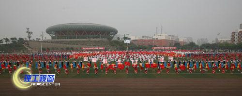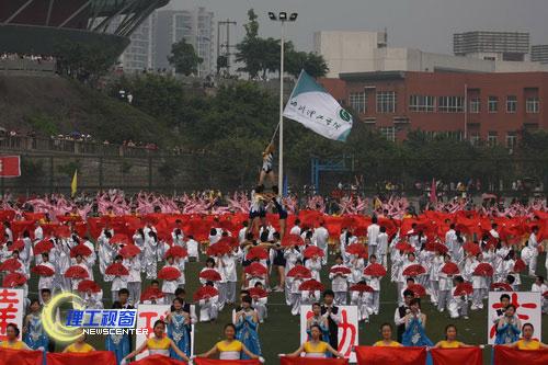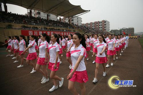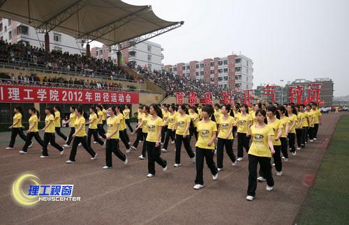团体操经过精心策划和参与者的艰苦排练,精彩的表演博得了全场喝彩迭起,欢声雷动。之后,党委书记游建军宣布:四川理工学院2012年田径运动会开始!各项目投入了紧张的竞赛,将在为期两天半的时间内进行男女学生组(普通和特长两类)和教工组39个项目的激烈角逐。