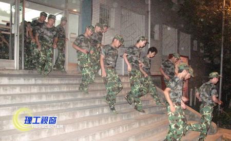 20:03分,随着紧急集合号的吹响,新生们分别从自己的寝室跑下楼梯,学生们按照单号楼层的从左侧楼梯疏散,双号楼层的从右侧楼梯疏散,且按照先低层后高层的顺序进行疏散,最后到达指定地点——运动场集合。学生离开寝室共花费时间4分39秒、集合完毕时间8分44秒,整个演练过程安全、有序,无踩踏、受伤事件。