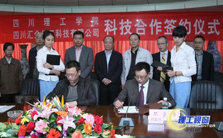 10月18日下午,我校与四川汇金化工科技有限公司科技合作签约仪式在我校行政楼第4会议室正式举行。副院长蔡乐才致欢迎辞。他首先介绍我校教学科研成果,2006年已与自贡市人民政府签订全面合作框架协议,与省内外60余家企业建立的产业技术创新战略联盟已取得了初步成效。他说,我校始终把人才培养、科学研究和服务社会作为指向,坚持把产学研合作作为推进学校转型和实力提升的重要途径和主要突破口,服务地方经济建设和社会发展。