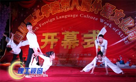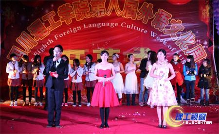 为营造浓厚的外语学习氛围,拓展学生视野,提高学生外语综合运用能力,同时也为学生提供一个了解外国文化、语言和展现专业特色与技能的平台,12月3日晚,我校第八届“外语文化周”在汇东校区篮球场隆重开幕。学校保卫处处长钟世荣,团委书记王建琼、副书记张潇文,学生处副处长王令权,外语学院党总支书记云虹、院长夏宏钟、副书记吴春容、副院长梁勇等出席开幕式并剪彩。王建琼在开幕式上致辞,祝愿此次外语文化周取得圆满成功。