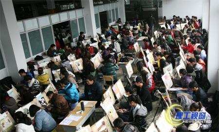 与往年不同的是,今年全省统一采取了提前在网上报名缴费的方式,考生只需在考点持身份证和报考证进行现场确认,这样简化了手续,极大地方便了考生。14日上午,考生陆续来到设在科学会堂底楼的报名点进行考生身份确认,整个现场井然有序。15日—16日,所有参考学生在两天时间内完成了《色彩》、《素描》、《速写》三门专业考试。