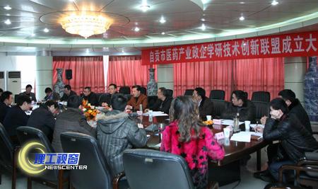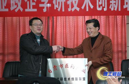 12月21日,由我校与自贡市食品药品监管局共同倡导建立的“自贡市医药产业政企学研技术创新联盟”在学校汇东校区第四会议室举行了隆重的成立仪式。联盟第一届理事会理事长、学校副院长蔡乐才,自贡市人民政府副市长未也、市食品药品监管局局长张松杨、市科技局副局长朱柱,自贡市具有发展优势和潜力的药品生产经营企业和市科技情报所负责人出席仪式。