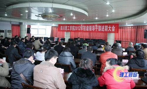 12月25日,我校2012年校级干部述职测评大会在汇东校区行政楼5楼举行。9位校领导分别在会上述职。学校正处级以上干部(含主持工作副处级)、省市人大代表、省市政协委员代表、民主党派负责人代表、教代会主席团成员代表和专家学者代表等参加了测评大会。