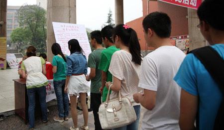 校工会、校团委和校学生会分别发起倡议,通过各种形式进行募捐。记者在现场看到,老师和同学们纷纷自发前来为雅安震区人民捐款,采访中一位同学表示“在今天我们都是雅安人,希望自己的一点爱心能够为灾区重建奉献一份力量。