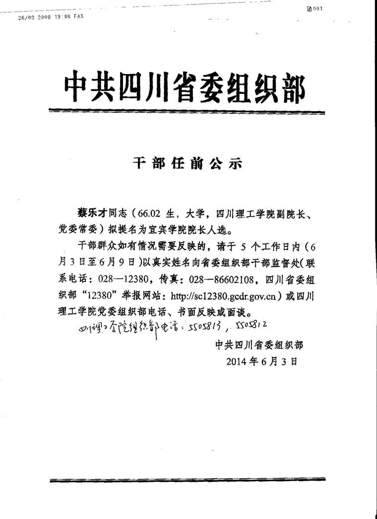 蔡乐才干部任前公示