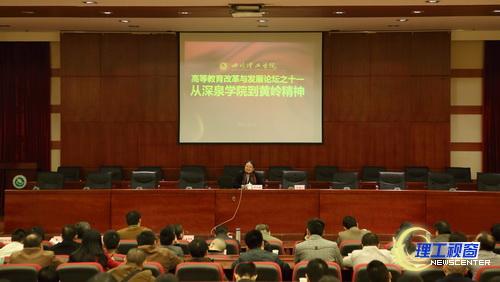 11月7日下午,我校举办第十一期“高等教育改革与发展论坛”,中国高等教育学会副秘书长叶之红研究员在汇东校区学术报告厅,为我校部分干部职工作了一场题为《从深泉学院到黄岭精神》的专题报告。校党政领导汪明义、李开世、龚敏、刘康、王成端出席报告会。报告会由校长汪明义主持。