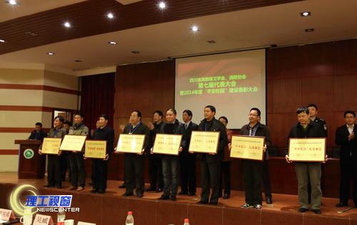 学会副理事长、西南科技大学党委副书记张强宣读了《四川省高教保卫学会、消防协会2014年度“平安校园”建设先进单位、先进个人表彰决定》。包括我校在内的40家先进单位获大会表彰。