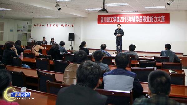 为进一步提升学校辅导员队伍的理论素养和业务能力,搭建辅导员学习交流平台,学生工作部(处)于3月18日举办了2015年四川理工学院辅导员职业能力大赛,来自学校15个二级学院(部)及黄岭校区基础教学部的21名辅导员参加了大赛。