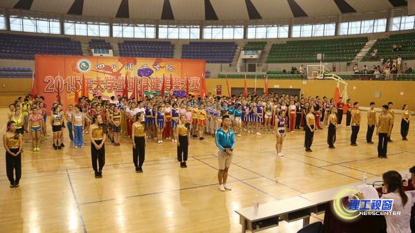 下午2:00,汇东校区体育馆内各参赛队伍依次闪亮登场。学校体育运动委员会主任、副校长王成端,各二级学院领导和职能部门负责人,各学院学生代表,研究生、留学生代表共同观看了比赛。