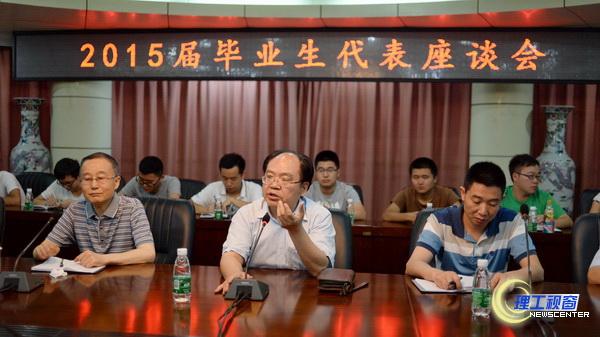 6月15日晚上7:30,我校2015年毕业生代表座谈会在行政中心第四会议室举行,会议持续了两个小时。校长汪明义,学生处、保卫处、校团委、后勤服务总公司负责人,学校各二级学院毕业生代表参加会议。会议由学校党委副书记、纪委书记李开世主持。