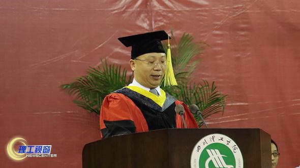 汪明义在讲话中为同学们赠送了五句话,希望同学们 “打包”装进行囊,一生珍藏:一是修身为本,让高雅的情趣快乐你的人生;二是齐家为要,让浓浓的亲情幸福你的人生;三是母校为荣,让川理工文化浸润你的人生;四是国家为重,让民族昌盛奠基你的人生;五是天下为志,让卓越精神辉煌你的人生。